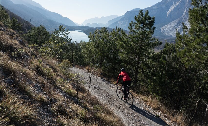 Per chi desidera un giro non eccessivamente lungo e faticoso, ma comunque interessante e vario, questa è la scelta ideale. Si parte da Arco in direzione di San Martino e si percorre dapprima una strada di montagna, poi sentieri in cemento e ghiaia, fino alla frazione di Carobbi, dove si trova una pittoresca fattoria circondata da imponenti castagni. Tramite strade forestali si arriva al pittoresco paesino Braila, mentre una strada asfaltata conduce alla Open Air Gallery. Passando per Drena, superato l’imponente castello, si scende nella Valle del Sarca. Sempre sul versante sud-orientale della valle, alternando asfalto e ghiaia, un tratto in pianura in mezzo a frutteti e vigneti riconduce al punto di partenza ad Arco. Difficoltà: Medio Caneve (Arco) I Percorsi in Bici Ciclabile dei Laghi: Padergnone - Terlago ciclabili Link Durata: h 1:00 Lunghezza: 9,7km Salita: 210m Tratto di pista ciclabile che collega l'abitato di Padergnone con il lago di Terlago. Difficoltà: Medio Padergnone I Percorsi in Bici Valle dei Laghi Trail-Tour mountain bike Link Durata: h 6:00 Lunghezza: 43,8km Salita: 692m Giro molto vario attraverso l’intera Valle dei Laghi. Difficoltà: Difficile Vezzano I Percorsi in Bici Variante Terlago mountain bike Link Durata: h 3:00 Lunghezza: 21,3km Salita: 514m Giro con partenza e arrivo nel paese di Terlago Difficoltà: Medio Terlago I Percorsi in Bici Cavedine - Tour mountain bike Link Durata: h 4:10 Lunghezza: 32,8km Salita: 371m Divertimento in MTB tra la Valle del Sarca e la Valle di Cavedine. Difficoltà: Medio Sarche I Percorsi in Bici Monte Gazza - Tour mountain bike Link Durata: h 7:00 Lunghezza: 47,4km Salita: 1.079m Fantastica escursione con vista su 5 laghi e le Dolomiti. Difficoltà: Difficile Ranzo I Percorsi in Bici Variante Leano mountain bike Link Durata: h 0:45 Lunghezza: 5,6km Salita: 740m Questo percorso è una variante del 733. Tremalzo Garda XXL Tour, ideale per chi vuole affrontare il tour partendo dal Lago di Ledro anziché da Riva del Garda. Difficoltà: Facile Passo Guil I Percorsi in Bici Variante per Elisa - Trail mountain bike Link Durata: h 0:04 Lunghezza: 1,7km Salita: 368m Variante del 743. Bocca di Tovo Trail-Tour. Percorso breve ma impegnativo, sconsigliato ai principianti. Difficoltà: Facile Calino I Percorsi in Bici Cavedine Shortcut mountain bike Link Durata: h 0:40 Lunghezza: 7,1km Salita: 11m Scorciatoia comoda o tour per famiglie. Difficoltà: Facile Trebi I Percorsi in Bici Garda Dolomiti Tour mountain bike Link Durata: h 8:00 Lunghezza: 66,7km Salita: 828m Un percorso lungo e di straordinaria bellezza paesaggistica,senza difficoltà significative. Difficoltà: Difficile Riva del Garda I Percorsi in Bici Shortcut Arco mountain bike Link Durata: h 0:40 Lunghezza: 2,7km Salita: 40m Se non si vuole percorrere l’intero tragitto del 731. Anello Garda Sarca, è possibile una scorciatoia ad Arco. Difficoltà: Facile Stranfora I Percorsi in Bici Shortcut Pietramurata mountain bike Link Durata: h 0:05 Lunghezza: 0,3km Salita: 4m Se non si vuole percorrere l’intero tragitto del 731. Anello Garda Sarca, è possibile una scorciatoia a Pietramurata. Difficoltà: Facile Borgo Nuovo I Percorsi in Bici Ciclabile del Limarò ciclabili Link Durata: h 1:00 Lunghezza: 6,0km Salita: 96m Questa ciclabile attraversa la gola del Limarò, modellata nel corso dei secoli dalle acque del fiume Sarca nel suo tragitto dalle Dolomiti di Brenta al Lago di Garda. Difficoltà: Facile Sarche I Percorsi in Bici Baby Family Bike Somator mountain bike Link Durata: h 0:27 Lunghezza: 4,3km Salita: 76m Divertente percorso per bambini e famiglie adatto anche ai più piccoli. Difficoltà: Facile Passo Bordala I Percorsi in Bici Val di Gresta Trail-Tour mountain bike Link Durata: h 4:25 Lunghezza: 28,0km Salita: 771m Un giro panoramico che abbraccia l‘intera Val di Gresta. Difficoltà: Difficile Ronzo-Chienis I Percorsi in Bici Monte Biaena Trail-Tour mountain bike Link Durata: h 2:10 Lunghezza: 13,8km Salita: 554m Percorso abbastanza impegnativo che si snoda tra i borghi e le verdi montagne della Valle di Gresta. Difficoltà: Medio Ronzo-Chienis I Percorsi in Bici Val Marcia Trail-Tour mountain bike Link Durata: h 2:30 Lunghezza: 15,5km Salita: 411m Un percorso che attraversa la zona del Bleggio Superiore caratterizzata dagli stretti vicoli dei borghi contadini e dalle distese di campi coltivati. Difficoltà: Difficile Santa Croce I Percorsi in Bici Passo Bordala Trail-Tour mountain bike Link Durata: h 2:25 Lunghezza: 17,4km Salita: 346m Percorso di media difficoltà che parte da Ronzo-Chienis e conduce a Passo S. Barbara e Passo Bordala alternando sentieri naturalistici ed asfalto. Difficoltà: Medio Ronzo-Chienis I Percorsi in Bici E-Bike Marathon Bike Festival 2026 mountain bike Link Durata: h 5:00 Lunghezza: 48,7km Salita: 1.021m 48,7 km e 1.729 m D+: la Bike Marathon in versione e-bike. Flow, panorami iconici e grandi salite rese accessibili dall’assistenza elettrica. Difficoltà: Medio Riva del Garda I Percorsi in Bici Ciclovia del Garda: Riva del Garda - Sperone ciclabili Link Durata: h 0:25 Lunghezza: 2,2km Salita: 66m Aperto il primo tratto della Ciclovia del Garda nel tratto Trentino che da Riva del Garda porta fino alla spiaggia dello Sperone Difficoltà: Facile Riva del Garda I Percorsi in Bici Alla Scoperta dei Forti del Brione in bicicletta mountain bike Link Durata: h 1:10 Lunghezza: 8,5km Salita: 267m Percorso con le due ruote alla scoperta dei Forti Garda e Batteria di Mezzo costruiti oltre un secolo fa lungo la cresta del Monte Brione Difficoltà: Facile Riva del Garda